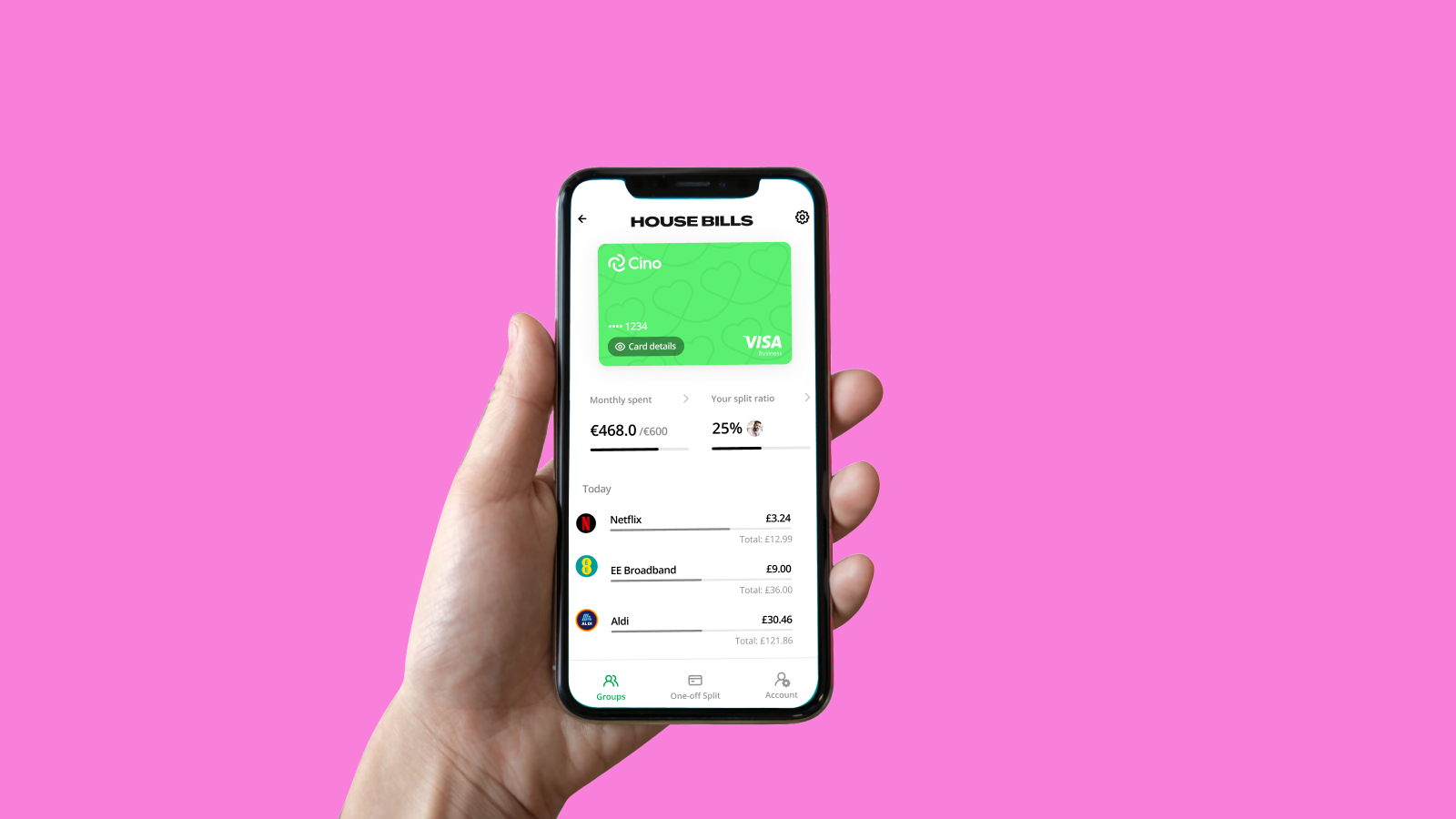 Cino is the first bill splitting app that automatically splits shared expenses at the point of transaction – meaning once you've paid, everyone's paid. It does this by creating shard virtual cards that link up to every group member's personal bank cards.
